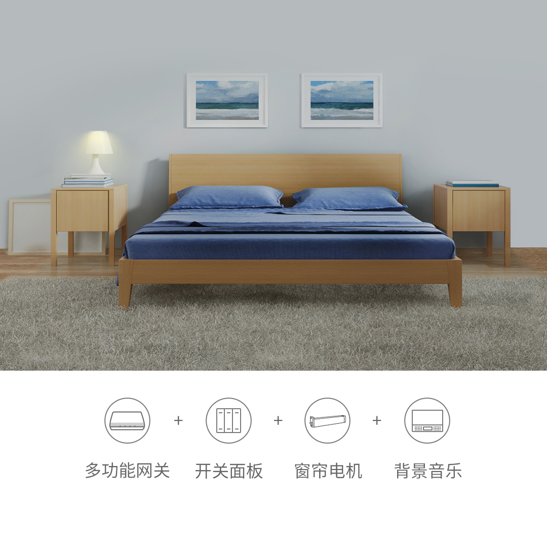 晚上躺在被窝里睡觉,懒得起床关灯,你只需提前通过智能家居管家APP设置云端场景。当你睡觉时,灯光将会缓缓关闭,窗帘自动合上,舒缓的背景音乐响起,伴随你安然入眠。在寒冷的冬天里,为家人营造一个舒适的睡眠环境~