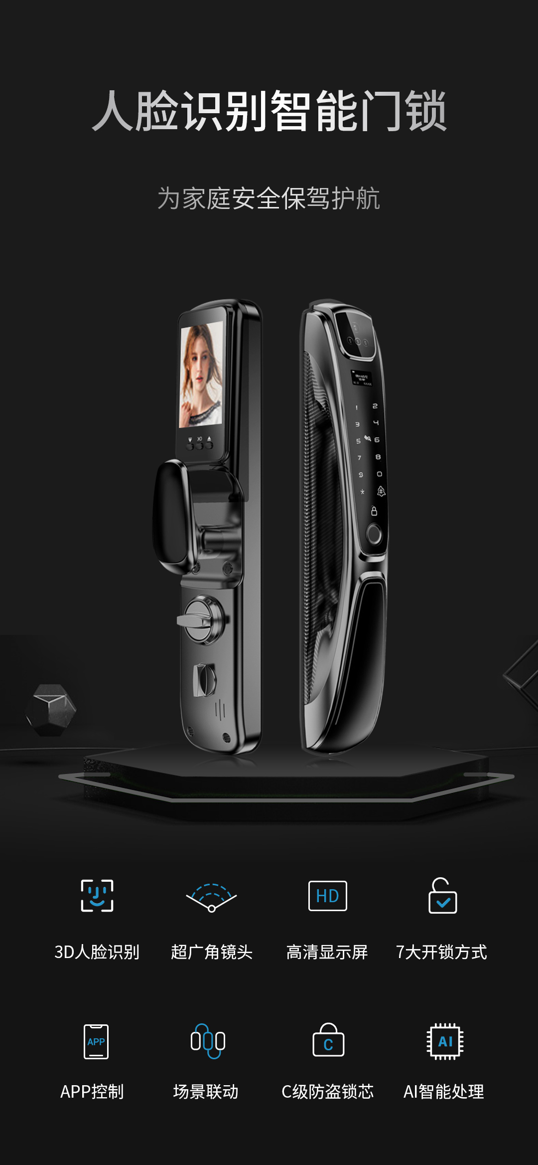 半导体指纹头,使用先进的AI仿生芯片,能够通过指纹拼接、图像识别自学算法,储存记忆常用指纹、人脸,越用越灵敏。指纹开锁操作便捷,轻轻一触,立刻打开家门。