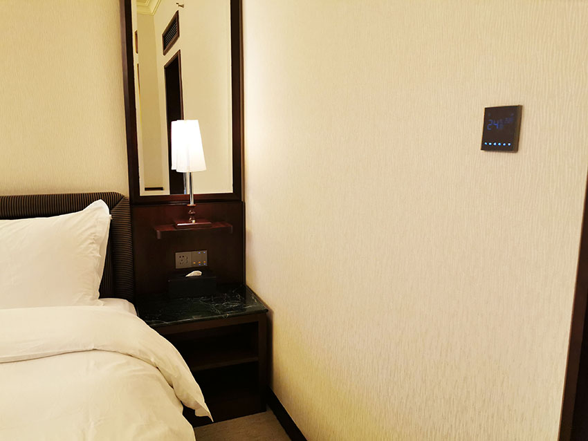 智能空调控制,利用智能温控器,让酒店的空调运行智能化,通过智能调节客房内环境温度的变化,避免空调使用时不必要的能源损耗,致力打造绿色酒店。